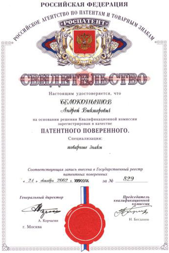 Патентный поверенный Российской Федерации (товарные знаки и знаки