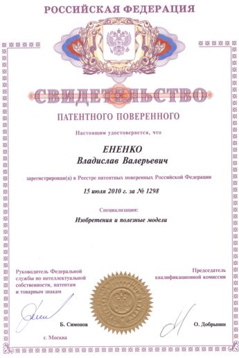 Патентный поверенный Российской Федерации (изобретения и полезные